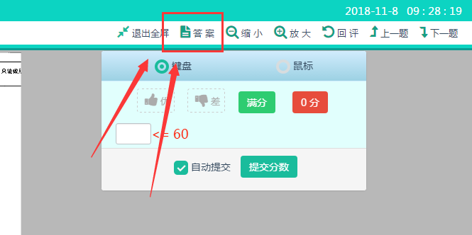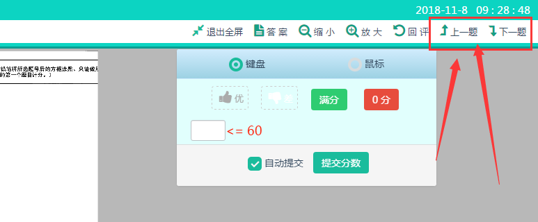 打分板提供两种打分方式“键盘打分(分数+Enter)”和“鼠标打分(点击分数直接进入下一题)”,打分板可自由拖动,且横向纵向放大缩小;