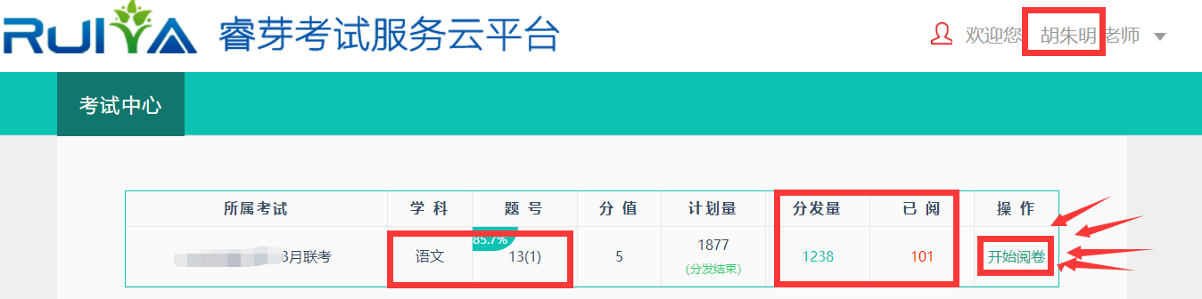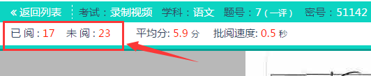 开始阅卷时,已阅量教师已经完成的阅卷数量,随着阅卷进度数量逐渐增加;未阅量为教师未完成阅卷数量,随着阅卷进度数量逐渐减少,在分发结束状态下,当未阅量为0时,阅卷结束;