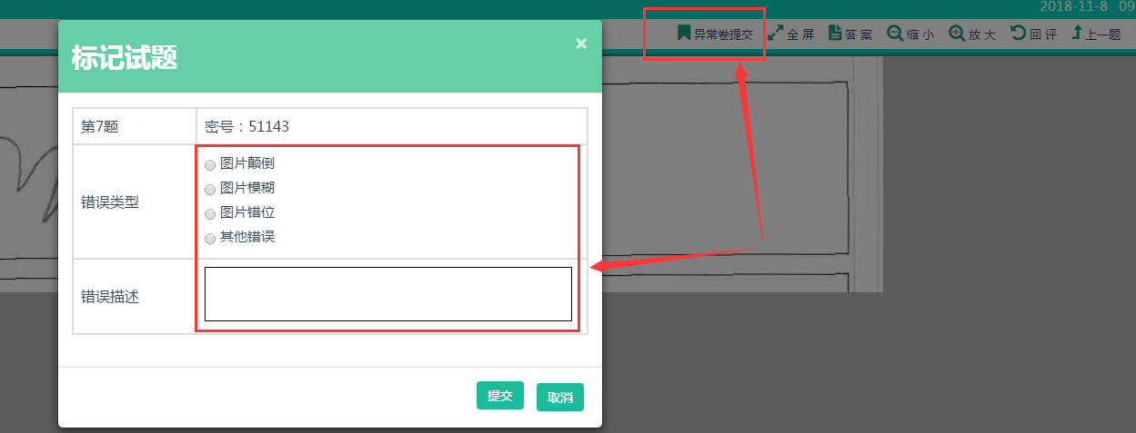 阅卷过程中,觉得学生答题非常精彩或犯典型错误时可以进行标注;